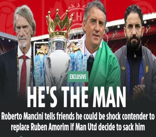 《太阳报》透露,60岁的曼奇尼,盯上曼联主帅的位置。曼奇尼告诉身边的朋友,如果阿莫林下课,他可能会是接班阿莫林的热门人选之一。