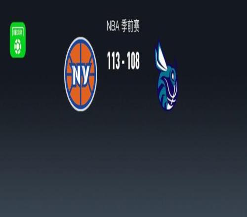 北京时间10月18日NBA 季前赛,纽约尼克斯对阵夏洛特黄蜂。半场尼克斯64-54黄蜂,最终尼克斯113-108黄蜂。纽约尼克斯布伦森31分7板6助,米卡尔-布里奇斯16分7板4助;夏洛特黄蜂塞克斯顿21分2板10助,迈尔斯-布里奇斯20分5板。