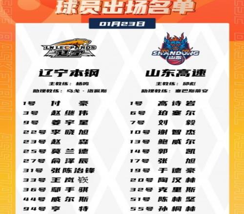 辽宁:威尔斯23分5助3断、赵继伟三分6中1得到12分7板6助、莫兰德11分11板3助3断2帽、付豪9分6板、王岚嵚9分5助、亨特8分。山东:克里斯16分6板4助、鲍威尔16分2助、高诗岩14分5板4助5断、陶汉林13分5板2助、陈林坚11分。